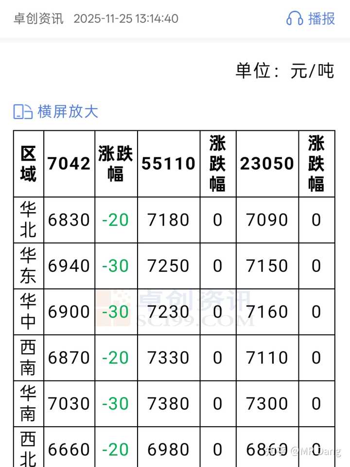 对比月初的同牌号7042数据,每吨售价降低了大约80到90元,降幅1.5%左右。