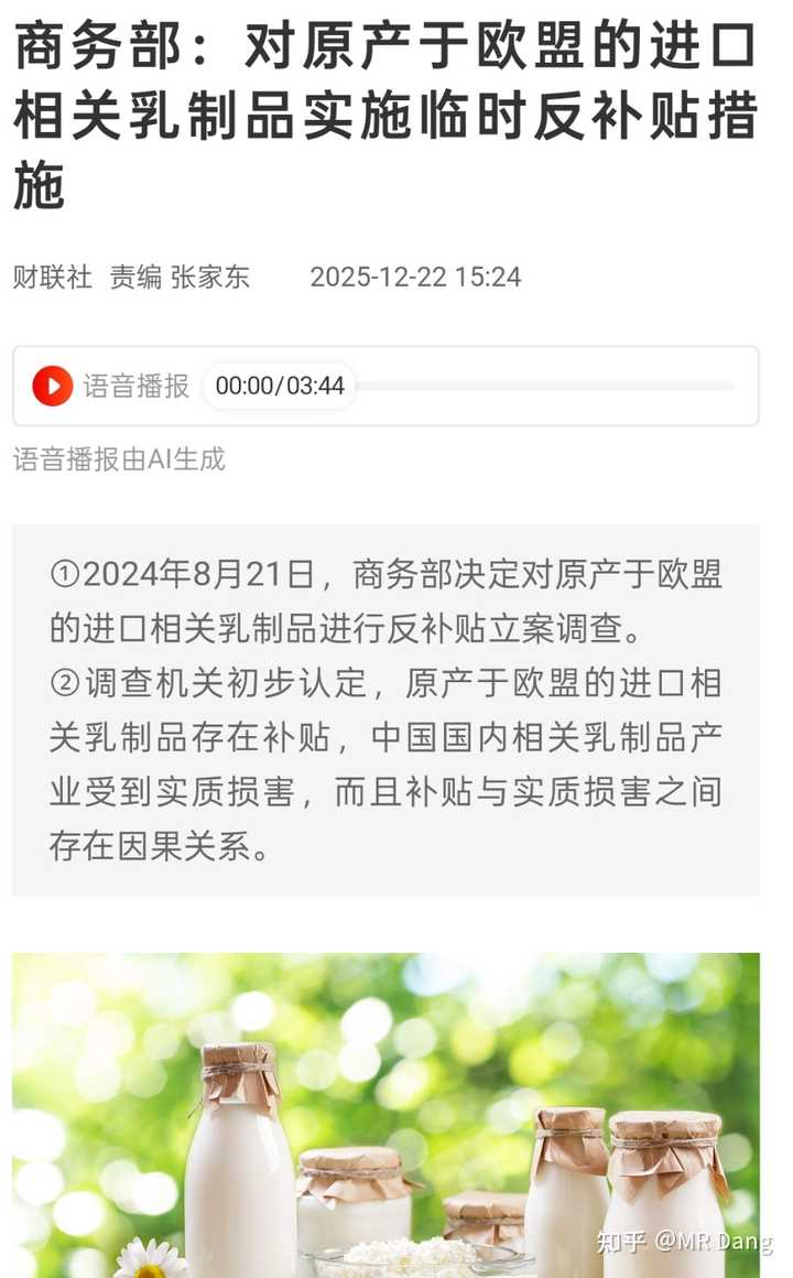 但是冷静分析的话,去年乳制品进口依存度是27.9%,欧盟大概就是三分之一左右,合下来不到10%。