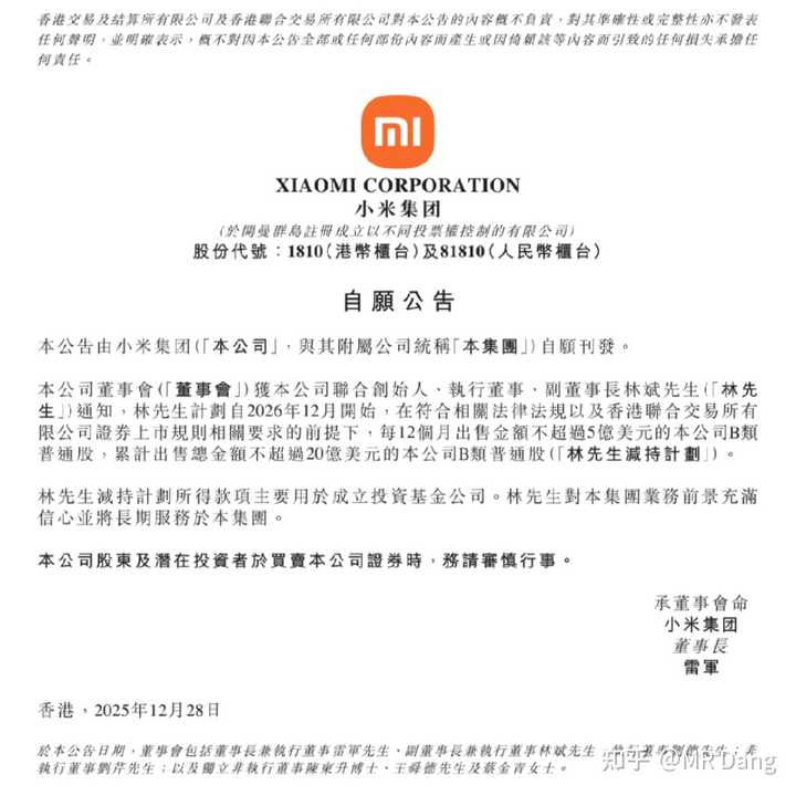 减持的林先生表示对米子业务前景充满信心并将长期服务。