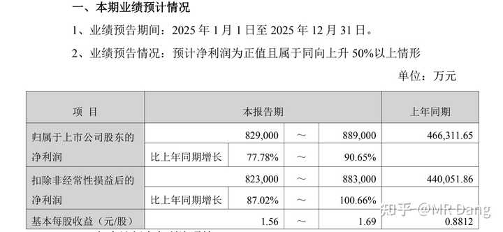 发了一份业绩预告,最重要的几个数字:
