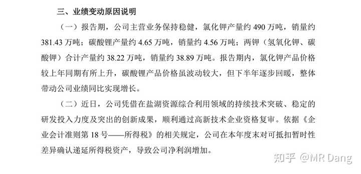 这很可能就是业绩超预期的主要原因,氯化钾和碳酸锂价格的上涨是次要原因。
