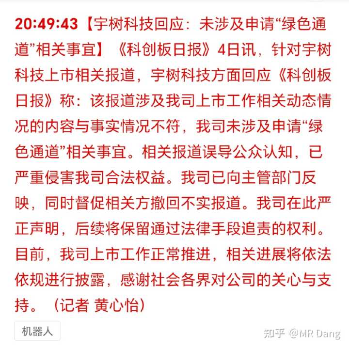 昨天小作文称某龙头机器人上市绿色通道被叫停,公司紧急回应: