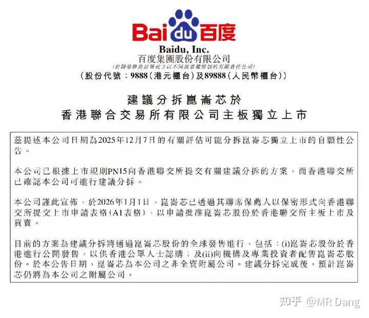 百度宣布分拆昆仑芯: