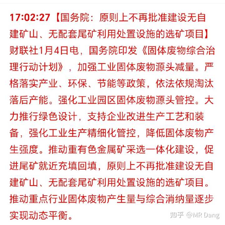 无尾矿利用处置的项目不再批准,必须一体化项目。
