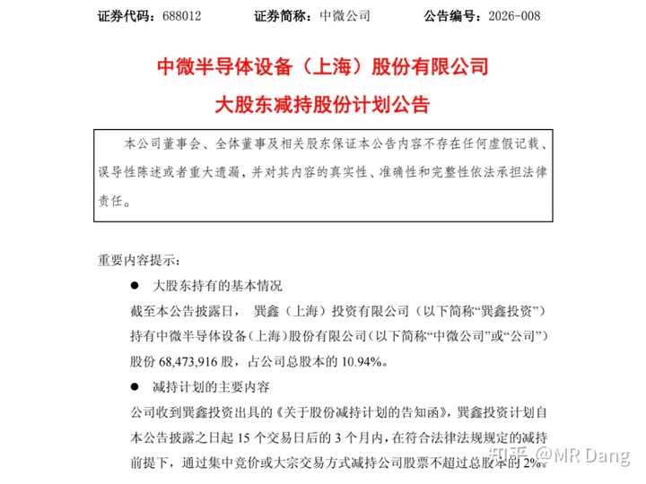 某半导体大股东减持: