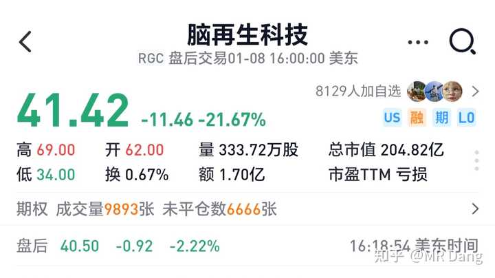 美股的脑机接口妖股脑再生开始回调了,A股炒概念的投资者注意风险吧。
