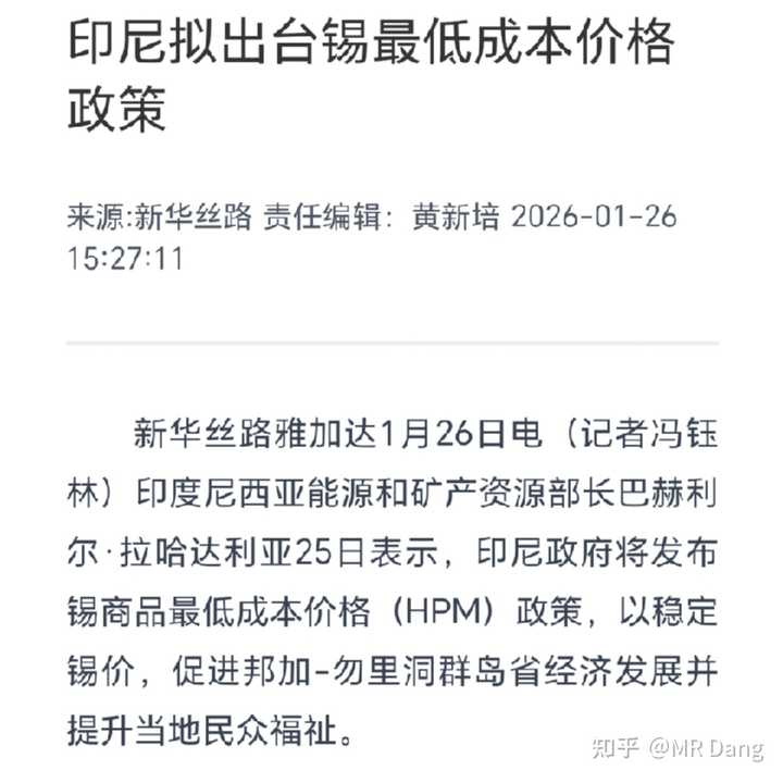 印尼要出台HPM政策保证锡的最低价格。