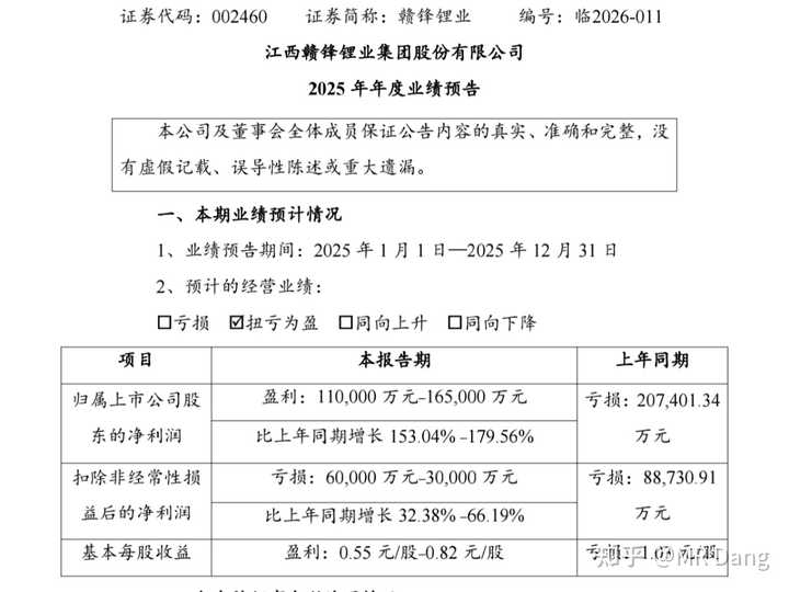 某锂企业绩预报: