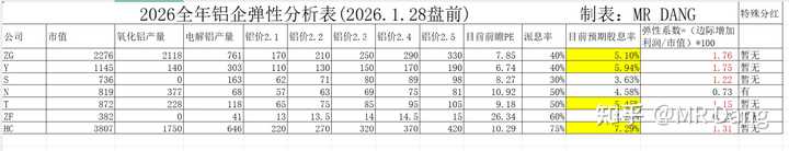 我知道这个表是比较冲击人的三观的,因为按照表中的预测,现在的铝股都便宜的令人发指,可是如果按照现状测算,这些都是可能发生的。