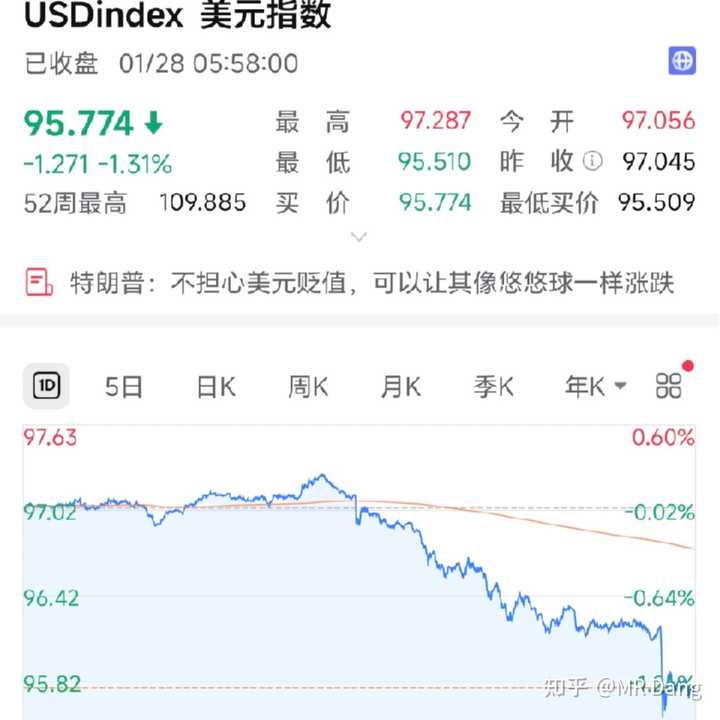美元指数大跌:
