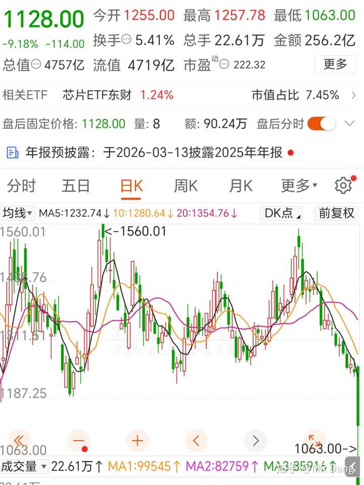 在此之前,寒王股价大幅回调,最低只有一千多: