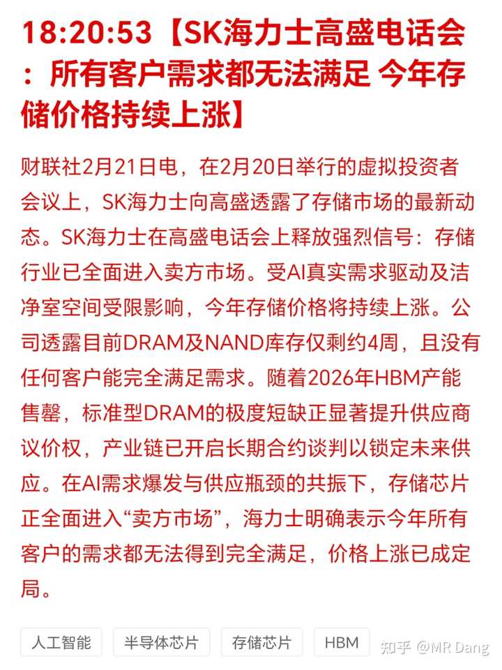 厂商宣称DRAM和NAND库存仅4周,所有客户的需求都无法满足,得加钱。