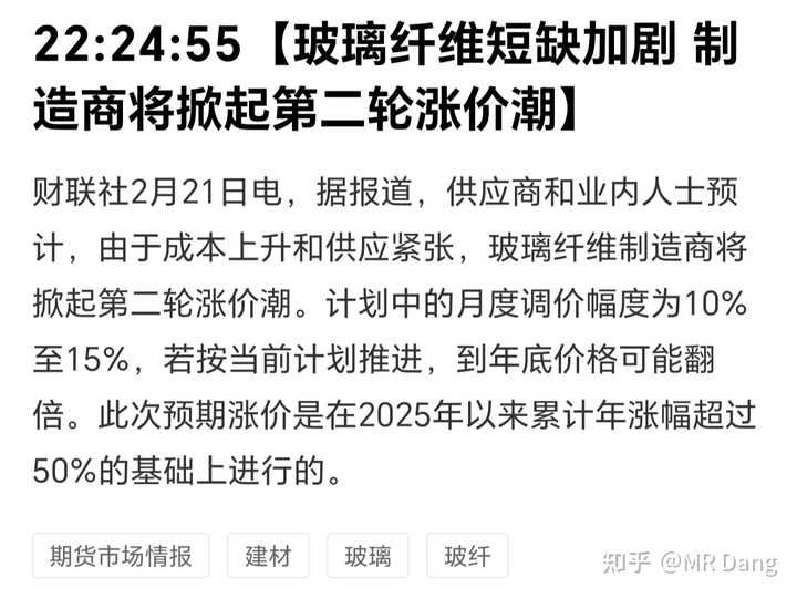 玻璃纤维涨价预期: