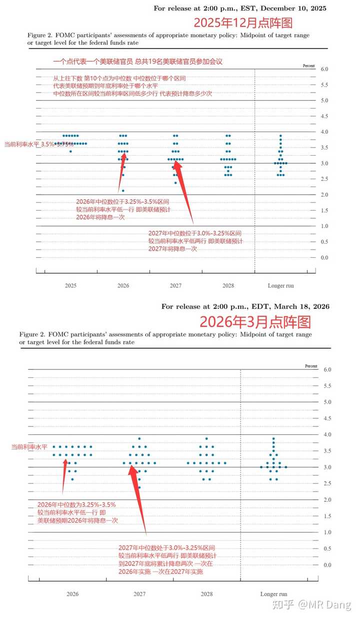 点阵图有很大的变化,数据更加收敛,按照最新的点阵图,2026还有一次降息,2027也有一次降息。